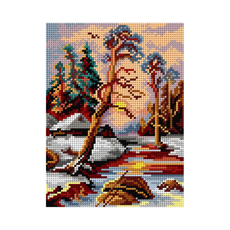 Hyvälaatuinen Orchidean  kanavatyö Näkymä Metsässä 18 x 24 cm. Työ ommellaan puoliristipistolla Paketti sisältää:
